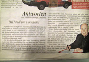 Auf Seite 10 folgt dann die seit 2006 fixe Rubrik „Antworten“ von Kardinal Schönborn, der zur Katastrophe in Japan Stellung nimmt und mit einer Einladung zum Gottesdienst für Japan im Stephansdom abschließt: