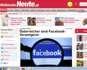„Land der Facebooker“ heißt ein Artikel vom 4. November, in dem Heute.at von der großen Beliebtheit des Social Networks berichtet zu berichten versucht: