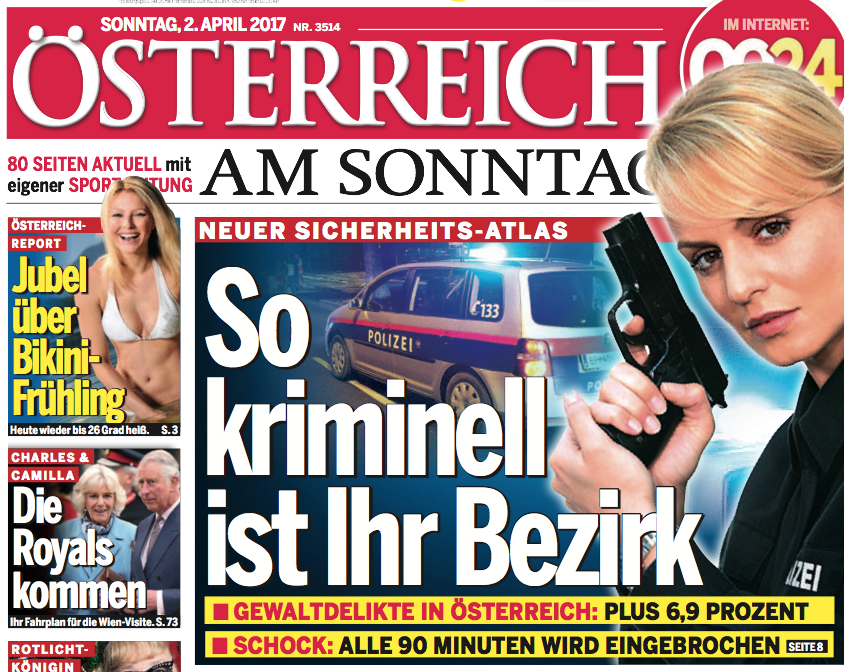 „Österreich“ dramatisiert die Zahlen der Kriminalstatistik 2016 maßlos und verbreitet (wieder einmal) Panik.